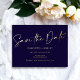 Modern elegant real gold foil script navy blue wedding save the date with a casual and cool script calligraphy .