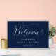 Make a statement and welcome your guests to your wedding with this elegant navy blue acrylic sign! Ability to use this sign for any event. Design with an elegant and sleek frame in an attractive navy blue color and beautiful modern handwritten calligraphy details in white. 12" x 18" is our default size, you can choose from several size options. Ideal for navy-theme or celestial theme weddings. "IMPORTANT NOTE: Small sizes come with a wood block to stand, bigger sizes need an easel or surface to stand so they won't warp. Dimensions of sign from demo photo with stand: 24" x 36"
