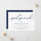 Need to postpone your wedding or change the date? Let guests know with these simple and elegant wedding postponement announcement cards. Chic navy blue and white design features "postponed" at the top in hand lettered calligraphy script, with your names and new date beneath. Adjust the wording and level of detail as needed. As shown, sample text directs guests to your wedding website for additional information.