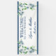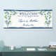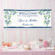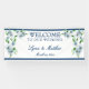 A Navy & White Wedding Reception Banner, created for your special day. Designed in lovely navy text, on a white background, with navy boarder and bursting with blue and white flowers. To personalize with the Bride & Groom's Names and Wedding Date, use our easy template to insert your details.