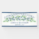 Add this Elegant Navy & White Congratulations Reception Sign / Banner to your wedding accessories list. Designed with bright, blue and white flower clusters, navy text, and navy border, on a white background. To personalize, use our easy template to insert your details (replacing the sample text). Matching reception accessories in this collection.