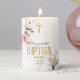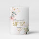 Elegant Neutral Baptism in watercolor floral & gold geometric Pillar Candle. Your event details can be customized in any color or font size of your choice.