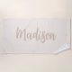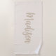 Create your own personalized beach towel with neutral beige color elegant script name.