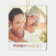 Stylish Minimalist holiday Newlywed Couple, family photo ornament with modern typography that reads "Merry and Bright". At the back you can add your names or family name in an elegant hand lettered calligraphy.