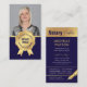 Elegant notary public business cards in navy blue and gold with space for your photo - perfect for notary public, loan signing agents, lawyers or any other professional. This modern business cards design features faux gold effects, navy background, space for one photo, notary badge with custom text and your contact details. You can edit the navy blue background to any color.