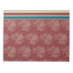 An elegantNotepad or Jotter, with a formalised floral pattern and deckchair stripes in beige and dark blue on a rich burgundy background.