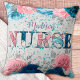 Elegant Nurse Pink Blue Silver Personalized Floral Throw Pillow