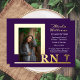 Elegant Nurse RN Caduceus Photo Graduate Purple Foil Invitation