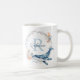 This ocean themed mug is designed with a blue and pink watercolor floral wreath, with a blue whale at the bottom. The middle of the wreath includes a customizable monogram, that you can personalize with a name and initial.