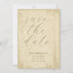 Set the tone for your wedding with this chic yet elegant Save the Date card, featuring a sophisticated off-white background with subtle grunge edges for a timeless vintage touch. The design showcases a beautifully stylized script for "Save the Date", perfectly balanced with modern Cormorant fonts for the names of the couple and wedding details. Fully customizable to reflect your unique love story, this design is ideal for couples seeking a refined yet contemporary aesthetic with a hint of antique charm.