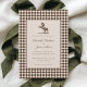 Elegant equestrian wedding invitation design that makes a classy and formal choice for any elevated wedding celebration or other luxury equestrian event. Featuring a horse illustration and fully customizable text to fit your event. Checkered background in brown and light beige.