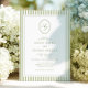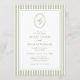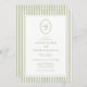 Elegant Blue & Sage Striped Wedding Invitation with an oval monogram crest