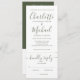 Plain white envelopes are included with paper invitations and will come to fit the invitation size you select. If you don’t need the envelopes, you may choose to not receive them by selecting the dropdown below "Envelopes" and choosing "None." If you’d like to have a design on your envelopes, you can browse all of these available envelopes to find the design that complements your Elegant Olive Green Script All In One Wedding Invitation.