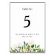 This elegant olive greenery table number is perfect for your modern summer boho wedding. It is designed with watercolor emerald green and sage-colored leaves, touches of botanical gold, blush pink olive flowers, and simple black vintage typography. All these elements combine for a beautiful bohemian feel.