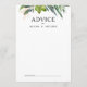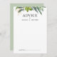 This elegant olive greenery wedding advice card is perfect for your modern summer boho wedding. It is designed with watercolor emerald green and sage-colored leaves, touches of botanical gold, and simple black vintage typography. All these elements combine for a beautiful bohemian feel.