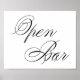 Elegant Open Bar Black Script | Horizontal Table Poster