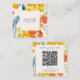 Elegant Orange QR Code Floral Pattern Modern Square Business Card