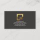 A large grey trapezium at the right wall houses a gold rebar logo at the top with the contact details near the base. Streaming out of its body is an orange stripe column, made elegant by a translucent layer underneath. In this striking space lies your personal contact details details, with your prestigious name and job title at the top. Overleaf, in a dark grey cover, the gold logo is at the top (you can upload a photo if you so wish, the dimensions are 1,000 x 1,000 pix) followed by the contact details and a slogan caption option to publicize your business.