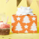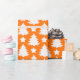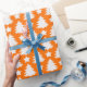 These cute orange and white Christmas wrapping paper, feature a whimsical Christmas tree and star pattern.