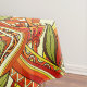 Years ago I got a matching runner from elsewhere and was so thrilled to find this same pattern offered as a tablecloth. The material is very high quality and it is well-constructed. Also it got here just in time for my party tomorrow! Would buy from this seller again. Colors are very sharp. It’s perfect. Well done