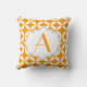 Elegant orange, white geometric pattern throw/toss decorative accent pillow design with a grey frame and your monogram featuring a modern yet with a vintage/retro flair geometric pattern. This monogrammed girly accent pillow design is completely customizable.