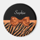 Elegant Orange Zebra Print FAUX Glitz Bow and Name Magnet