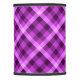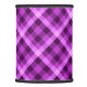 A lamp shade featuring a pretty, orchid purple plaid pattern design.