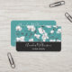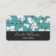 These trendy and modern floral black and white business cards feature a beautiful orchids pattern over a teal blue background. Easily customizable by adding your name (in a modern calligraphy white font) and profession (all caps white font) on the dark grey band on the lower part. The back of the card is teal blue and is personalizable with all your contact information (address, phone number, website, email address).