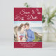 Elegant and romantic Save The Date photo card, featuring a beautiful and delicate white orchids floral line drawing on the upper part, over a classy Crimson red background. Easily personalizable by adding one of your favorite engagement horizontal pictures, and by editing the template fields on the dark red lower band with your names, date, and location in a modern and simple white all-caps font.