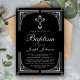 Elegant Ornate Border Silver Cross Baptism Invitation