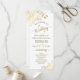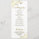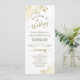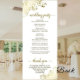 This beautiful wedding program features an elegant design with gold text on a white background and lacy golden faux foil curls and swirls in the corners. The titles are written in fancy script calligraphy, and there is space for your ceremony and wedding party details, as well as a short thank you for your guest. Wonderful way to welcome your friends and family to your wedding celebration.