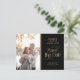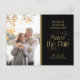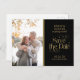 Elegant black and gold Save the Date post card for your wedding. The ornate typography has lovely flourishes that add an extra touch of class to this design. Personalize the cards with a favorite photo, the name of the bride and groom and the wedding date to save. These post cards make it handy to mail your save the date cards. Just address the back, add postage, and drop them in the mail.