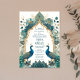 Elegant Ornate Vintage Blue Floral Arch Indian Wedding Invitation with two peacocks