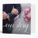 Remember your special day with this eye-catching edge-to-edge photo- and typography-based stretched album, which features elegant white script with the words "our story" rendered with artistic beginning and ending glyphs, set against an image of your choice. Customize with newlyweds' names and wedding date.