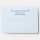 A pale blue wedding envelope with space on the back for the bride and groom's name and mailing address.