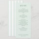 This elegant wedding menu features a clean, minimalist layout with a soft pastel green background that exudes sophistication. The design uses a combination of serif and sans-serif fonts to create a formal yet inviting atmosphere, with well-spaced sections for starters, salad, main course, and dessert. Each section is clearly marked, making it easy for guests to navigate the offerings. Customizable placeholders allow for personalization with names and dates, perfect for creating a memorable dining experience at your special event.