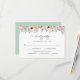 This party RSVP card features an elegant watercolor graphic of burgundy colored flowers and green leaves on a white background. The backside offers a light green background.
