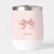 Elegant Pastel Pink Bow & Name Personalized Thermal Wine Tumbler