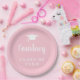 Elegant Pastel Pink Script Name Graduation Cap Paper Plates
