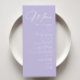 Perfect for your purple wedding! This charming menu complements any purple wedding theme, offering endless purple wedding ideas. With a light purple wedding theme, it beautifully enhances your lavender wedding theme or lilac wedding theme. Ideal for a whimsical garden wedding or a wildflower wedding theme, it's perfect for spring wedding ideas and garden wedding ideas. Also great for a summer wedding, it adds a touch of elegance to your celebration.