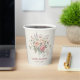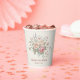 Wedding paper cups featuring pastel rose bouquets and a shabby chic design.