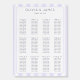 This wedding seating chart features a clean, minimalist design with a soft pastel color palette of light purple and white, creating an elegant and calming atmosphere. The layout is structured in a grid format, with twelve table sections clearly labeled for easy organization. A modern sans-serif font enhances readability, while subtle striped textures add depth without overwhelming the text. Perfect for formal events, this design balances aesthetics with functionality, ensuring clear communication of seating arrangements.