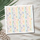 This Easter design features soft watercolor vertical stripes in pastel yellow, pink, and teal tones. Over the stripes appear delicate blue and green leaves combined with Easter eggs in orange, green, blue, and pink. The watercolor style gives the pattern a light, gentle look that feels fresh and spring inspired. The design is simple yet detailed, with a calm rhythm created by the vertical stripes and natural floral accents. It feels classic, timeless, and cheerful without being overwhelming. This pattern is perfect for Easter celebrations, spring gifts, seasonal stationery, décor, and accessories. The design can be transferred onto any product you choose.