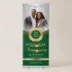 Welcome your guests with this professional DIY retractable banner sign featuring emerald green and gold color tones, placement for a scripture, a centered green and gold medal framed with a circular leaf design used for logos and/or wording, a soft grey gradient background, and elegant gold typography. Add your photo and customize to your liking.