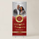 Welcome your guests with this professional DIY retractable banner sign featuring red and gold color tones, placement for a scripture, a centered red and gold medal framed with a circular leaf design used for logos and/or wording, a soft grey gradient background, and elegant gold typography. Add your photo and customize to your liking.