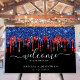 Add the finishing touch to your wedding reception party with these black red and blue glitter drips wedding welcome sign. Customize with your names, and wedding date. This USA American Flag themed wedding collection will be a favorite among all military, veterans, and armed forces. Visit our patriotic wedding collection for red white and blue wedding invitations, wedding favors, party supplies.COPYRIGHT © 2020 Judy Burrows, Black Dog Art - All Rights Reserved. Elegant Patriotic Blue Red Glitter Wedding Welcome Foam Board