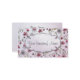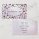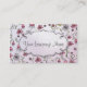 Beautiful business card design with a delicate flower pattern with pink flowers on a light pink background.