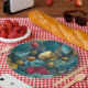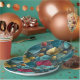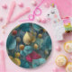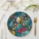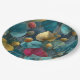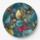 Elegant Pattern of Stylized Teal and Gold Leaves Paper Plates