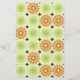 Scrapbook paper featuring an elegant design of red floral designs and green diamonds.