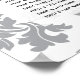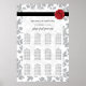 This design features elegant vintage leaf pattern and personalized wax seal image. The damask gray leaf patterned background contrasts against the black ribbon and red wax seal. The combination of gray, red, black and white colors create a sophisticated, trendy and chic style. Elegant wedding seating chart design with modern elements. The simple setup of the typography gives it a distinct style. Matching wedding invitations and other stationery items are also available.